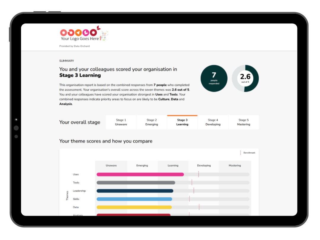 If you complete a free Data Maturity Assessment you’ll receive a report scoring your responses. A link to this report is also sent to your email so you can revisit it at any time. Explore a sample individual report.Organisation reports