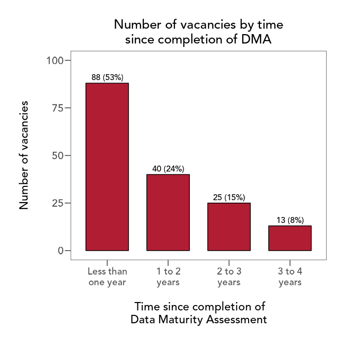 Among the roles advertised by organisations who had completed our Data Maturity Assessment we found that around two-thirds (65%) were from organisations who had taken our Data Maturity Assessment within the last two years.