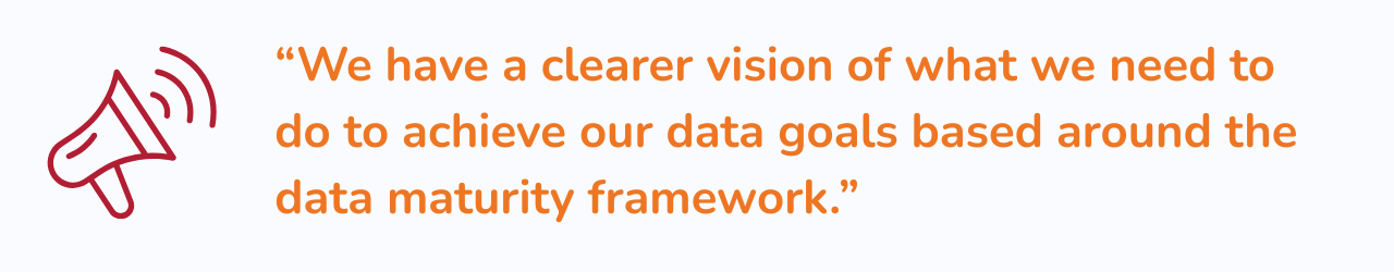 “We have a clearer vision of what we need to do to achieve our data goals based around the data maturity framework. I wouldn’t call this a data strategy yet, but we will get there soon. This vision helped us to secure support and investment in the team.”